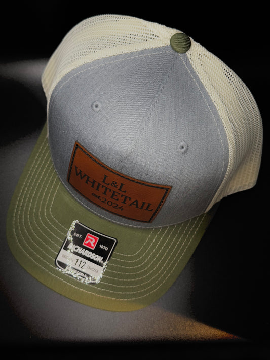 L&L Whitetail Leather Patch Hat - Richardson 112FP (Green/Gray/Khaki)