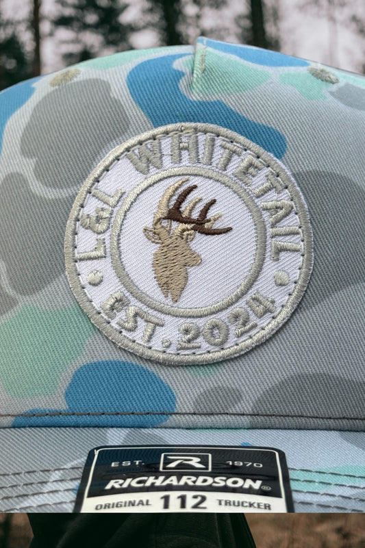 L&L Whitetail Embroidery Patch Logo Hat - Richardson 112PFP - Saltwater Camo